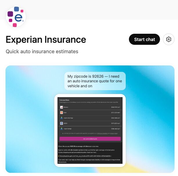To explore the Experian Insurance Marketplace within ChatGPT or learn more, visit www.experian.com/insurance