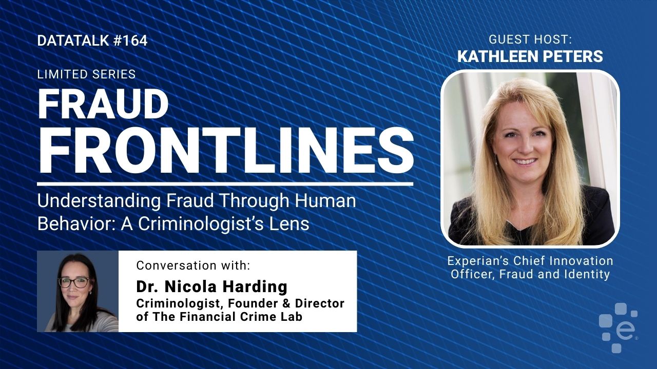 In this episode, Kathleen Peters, Chief Innovation Officer of Experian Identity and Fraud, sits down with Dr. Nicola Harding, a criminologist, and founder of The Financial Crime Lab. Dr. Harding shares her unique insights into the human behaviors behind fraud, emphasizing the importance of understanding the lived experiences of both victims and perpetrators.